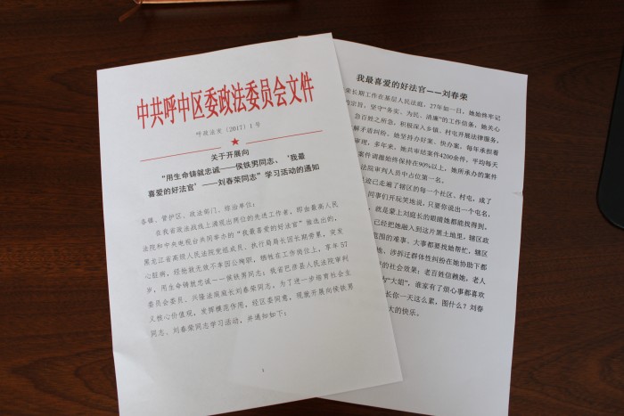 3月20日,呼中区人民法院联合区委政法委下发了《关于开展向 “用生命铸就忠诚——侯铁男同志、‘我最喜爱的好法官’——刘春荣同志”学习活动的通知》(下称《通知》),全力加大呼中区对我省政法战线上两位先进工作者的宣传力度,掀起宣传热潮,为进一步培育社会主义核心价值观营造良好的舆论氛围。